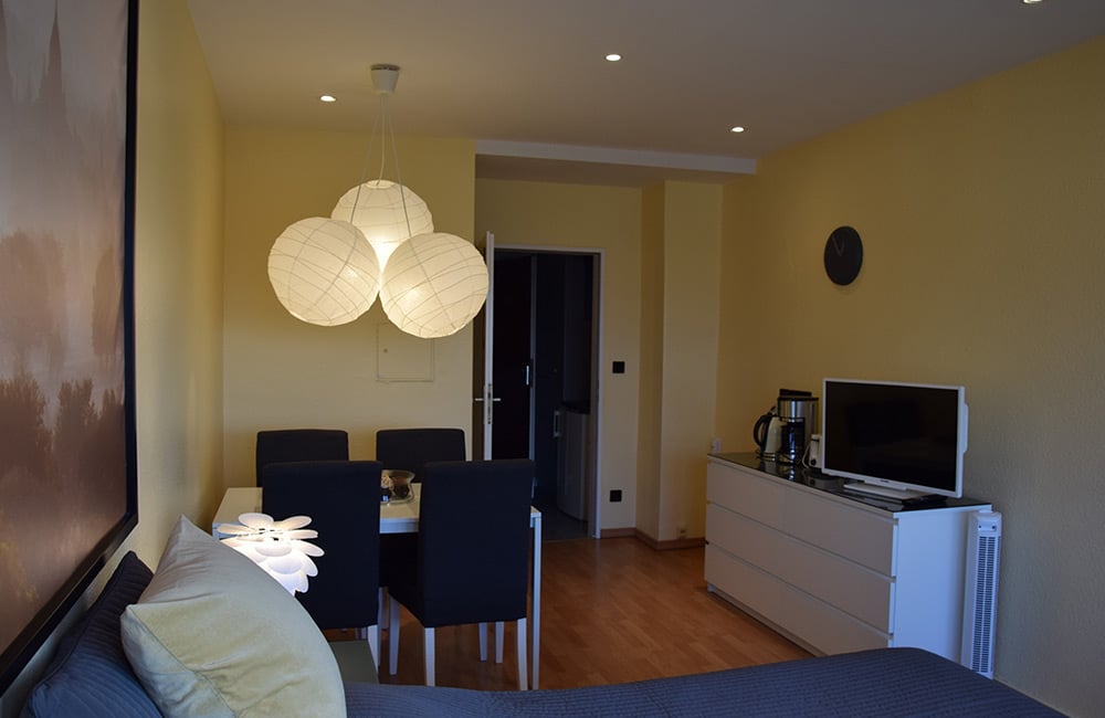Die Wohnung grenzt direkt an den Gemeinschaftsraum der Baugenossenschaft IDEAL eG. Beim dritten verfügbaren Bett handelt es sich um ein einfaches Gästebett.