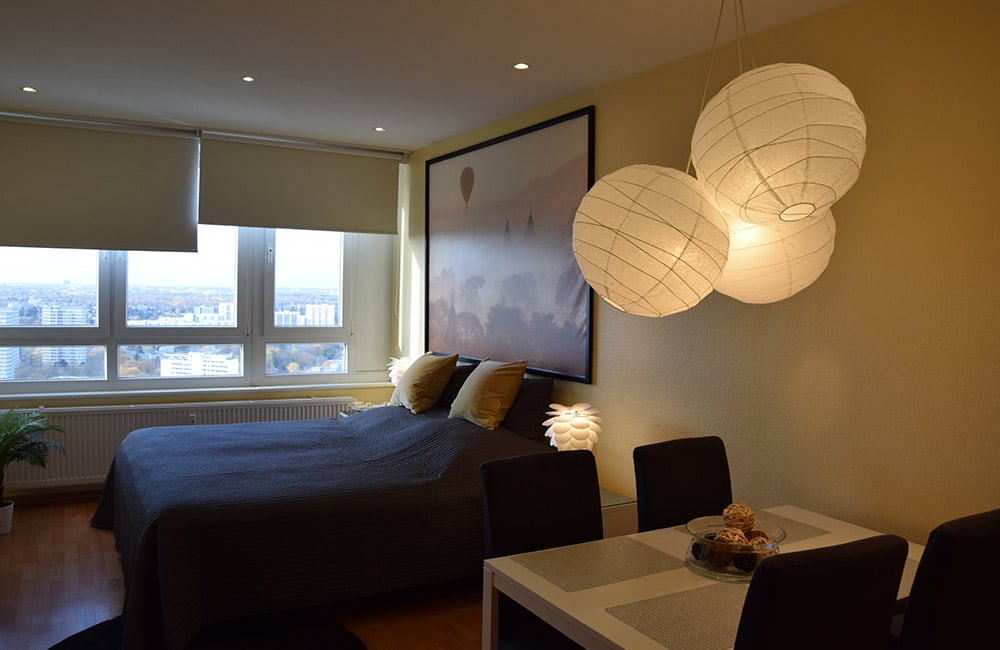 In der Fritz-Erler-Allee 120, dem höchsten Wohngebäude in Berlin haben wir zwei Gäste-Wohnungen, die sich in der obersten Etage befinden. Von hier aus, haben Sie einen ausgezeichneten Blick über die Gropiusstadt und darüber hinaus. Bis zu den U-Bahn-Haltestellen der U7 sind es ca. 10 Minuten Fußweg, das gesamte Berliner Stadtgebiet hat eine sehr gute Anbindung. 1994 wurden die Gropius-Passagen eröffnet, eines der größten Einkaufszentren Deutschlands. Hier kann man an Schlechtwettertagen ausgiebig shoppen. Das Gemeinschaftshaus Gropiusstadt ist ein interkultureller Treffpunkt, der auch Ausstellungen, eine Bibliothek sowie verschiedenste Veranstaltungen bietet. Im Sommer bietet das Gemeinschaftshaus ein Open-Air-Kino.