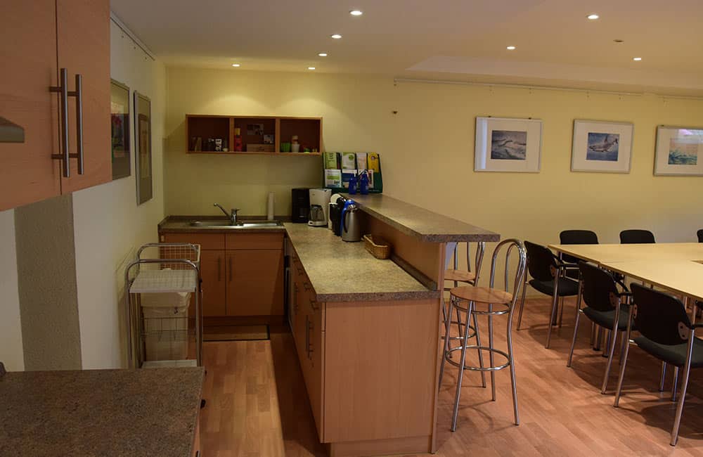 Ausstattung Kreativraum: | Herd Kühlschrank, Mikrowelle, Wasserkocher, Kaffeemaschine, Geschirr Kaffee und Essservice + Besteck |