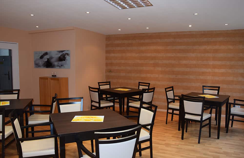 Personen Café: | 16 Plätze, zzgl. Sitzecke mit 3 Sesseln eine Bank (2-Sitzer), Stehtisch mit 2 Barhockern |